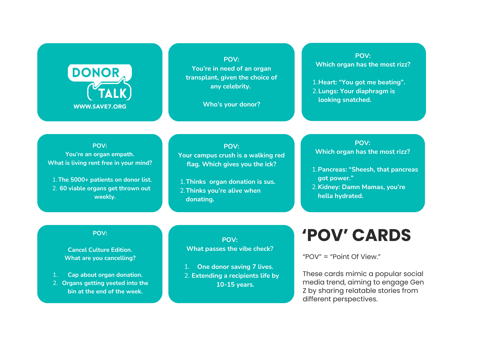 Encourage Gen Z to engage in meaningful conversations about organ donation in a light-hearted manner.